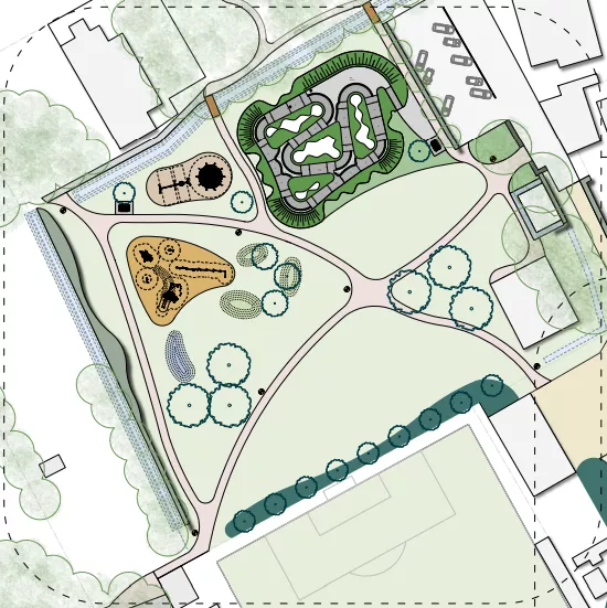 Een speelse en sportieve zone met aandacht voor jong en oud.