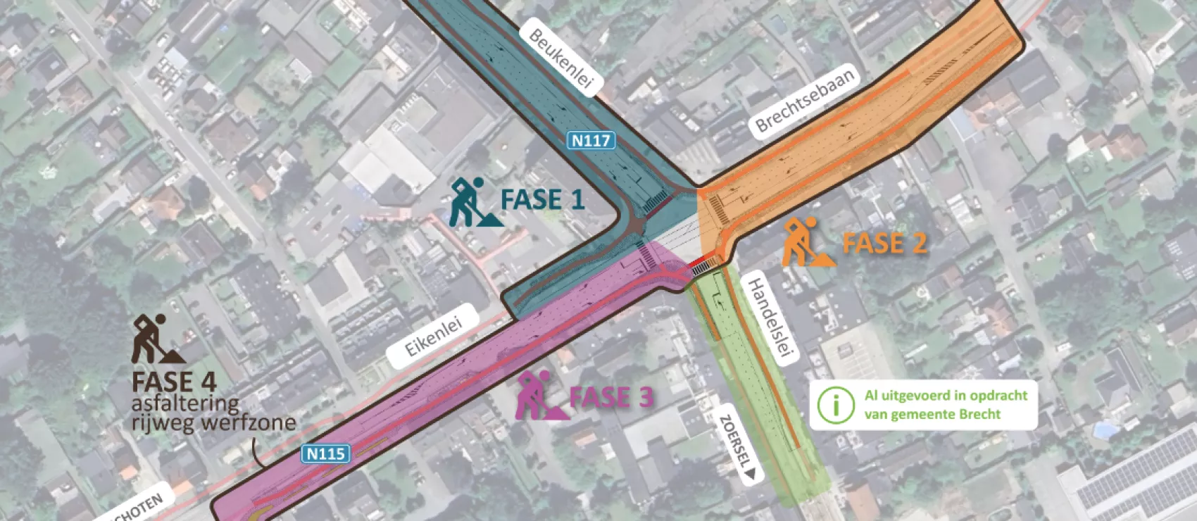 Heraanleg kruispunt Brechtsebaan, Eikenlei en Beukenlei Fase 3 en 4