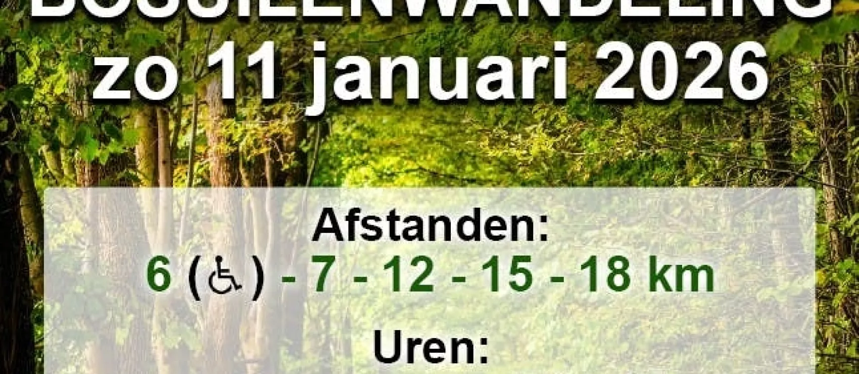 Afstanden: 6 - 7 - 12 - 15 - 18km, met volledige bewegwijzering en tussenstop.