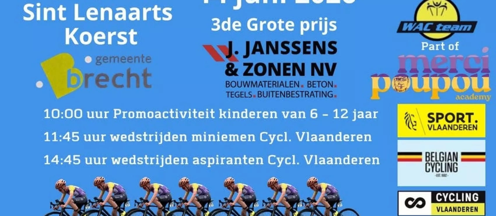 Verder promgramma voor aangesloten renners bij Cycling Vlaanderen en/of andere buitenlandse federatie- miniemen eerste reeks om 11:45 uur- aspiranten eerste reeks om 14:15 uur