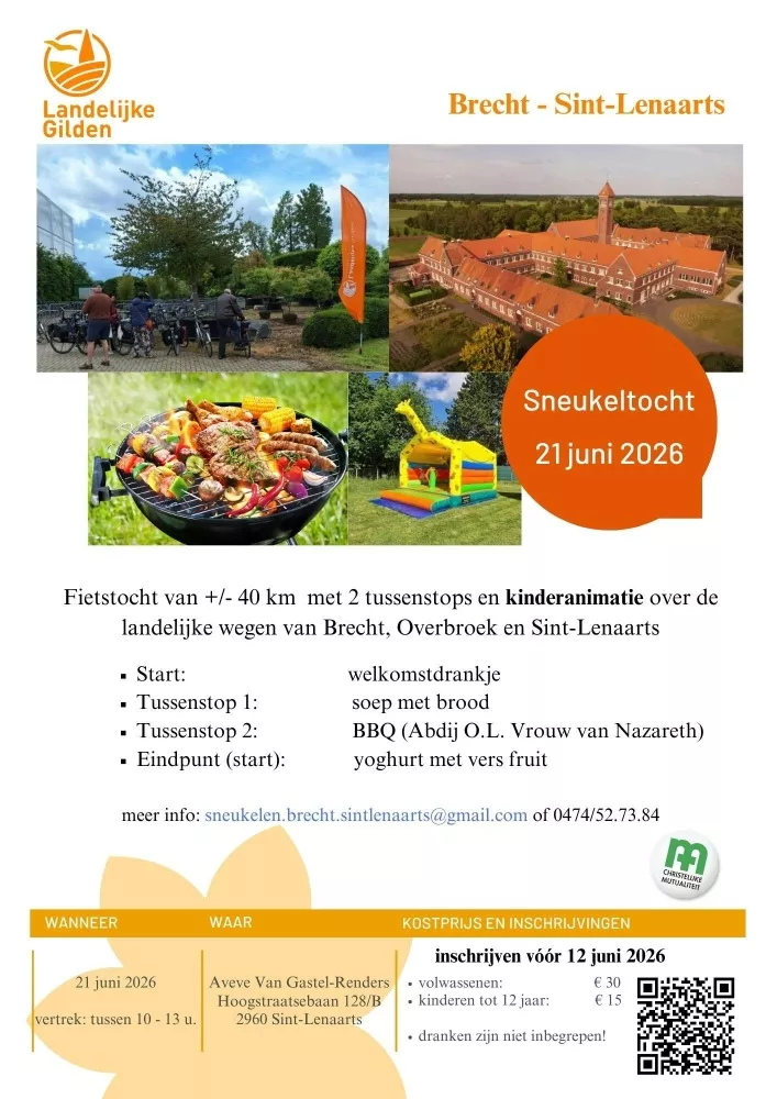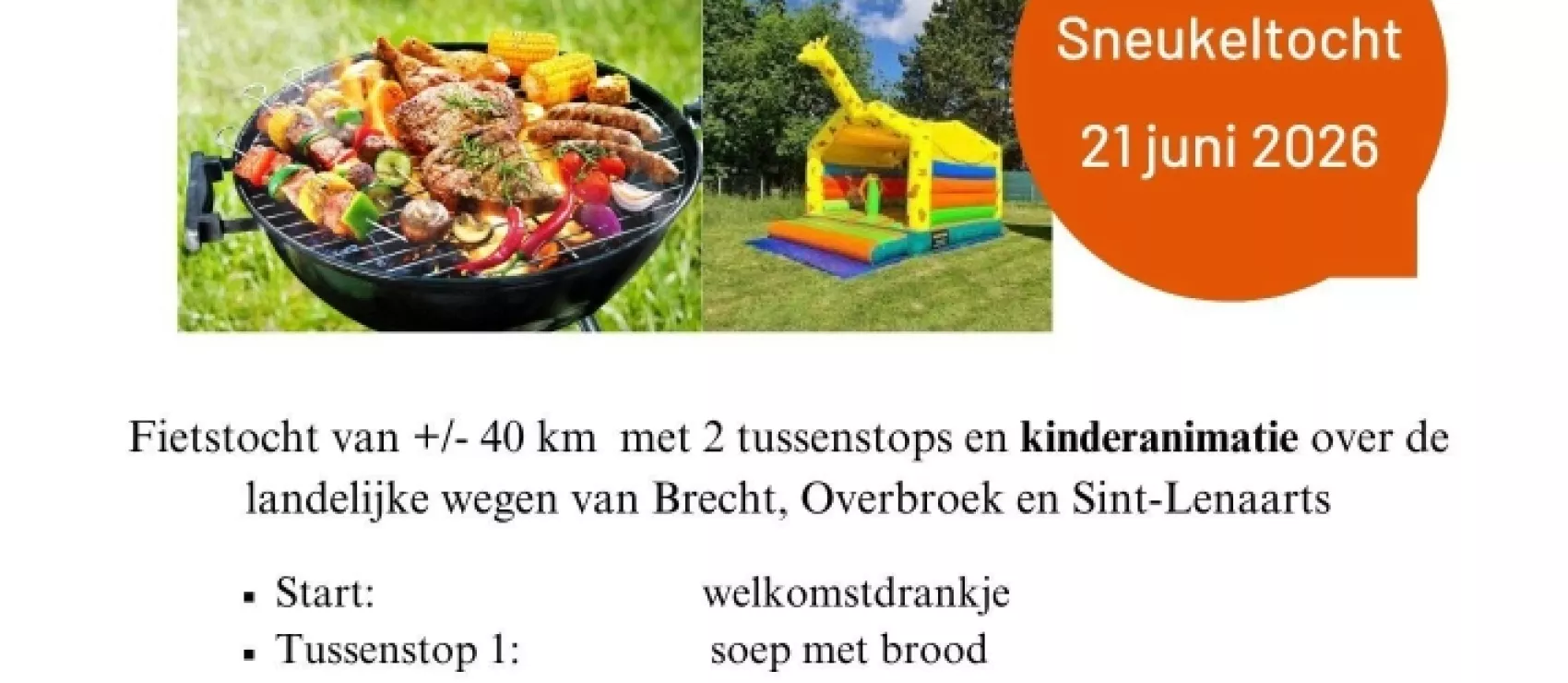 fietstocht van ongeveer 40 km, met 2 tussenstops en kinderanimatie, over de mooie landelijke wegen van Brecht, Overbroek en Sint-Lenaarts