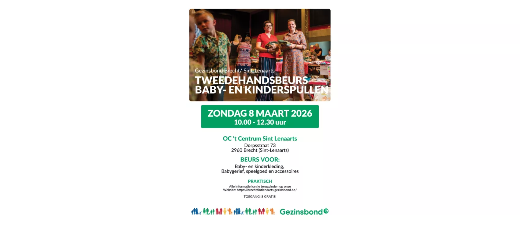 Alle praktische informatie kan je terugvinden op onze website: https://brechtsintlenaarts.gezinsbond.be/, van zodra beschikbaar.